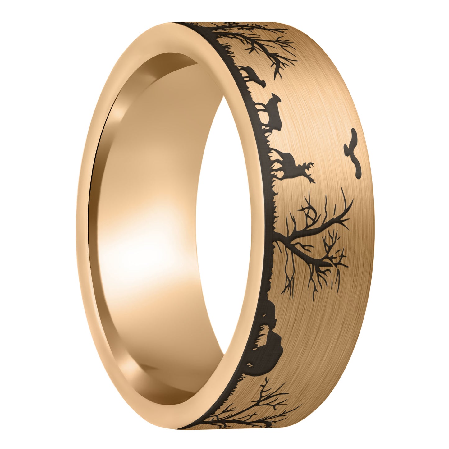 Alliance pour hommes en tungstène or rose brossé avec scène d'animaux des prairies