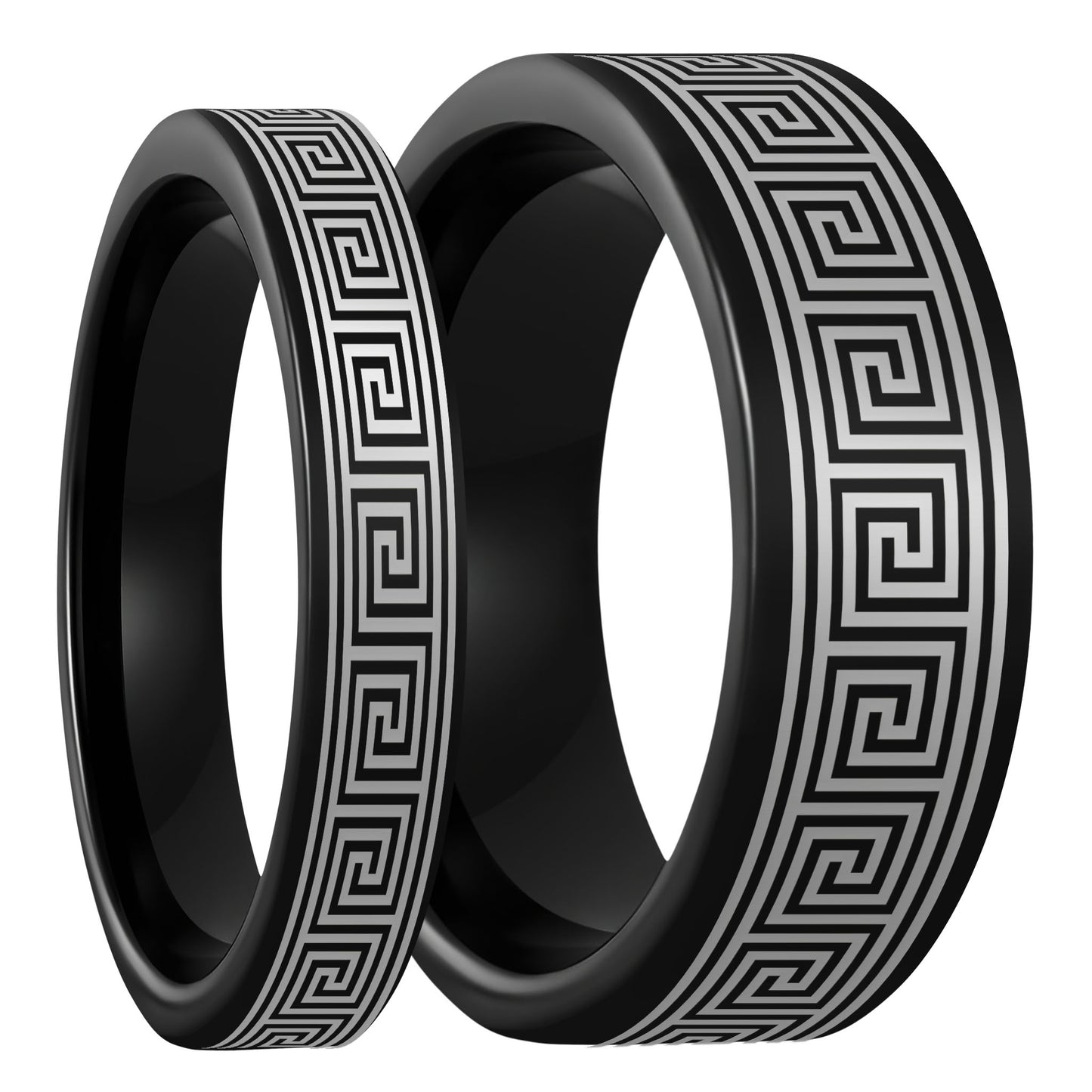 Ensemble d'alliances assorties pour couple en tungstène noir à clé grecque