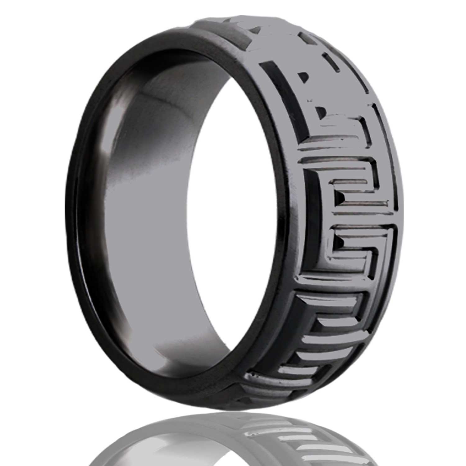 Alliance pour homme en zirconium bombé à clé grecque