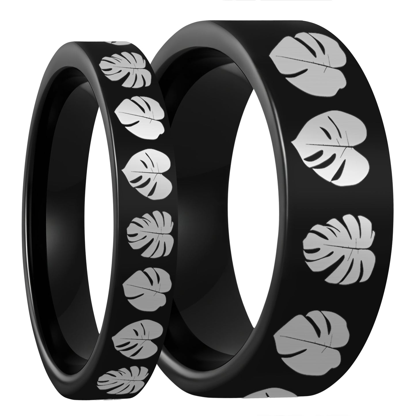 Ensemble d'alliances assorties pour couple Monsterra Leaves Black Tungsten