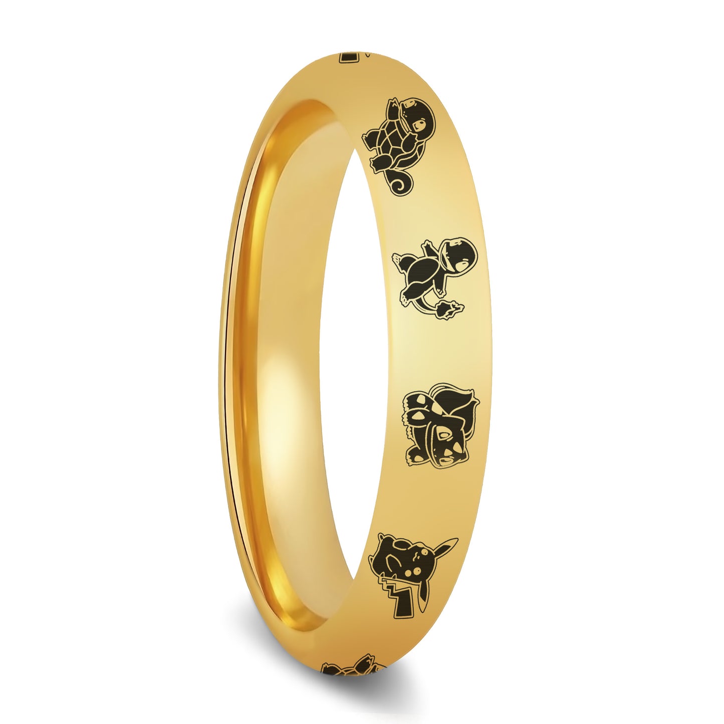 Pokemon Pikachu Charmander Squirtle Bulbasaur Bande de mariage en tungstène gravée