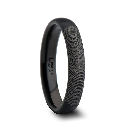 Bague en tungstène noir gravée par empreinte digitale personnalisée