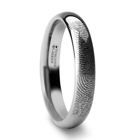 Bague pour femme en tungstène bombé gravé par empreinte digitale personnalisée
