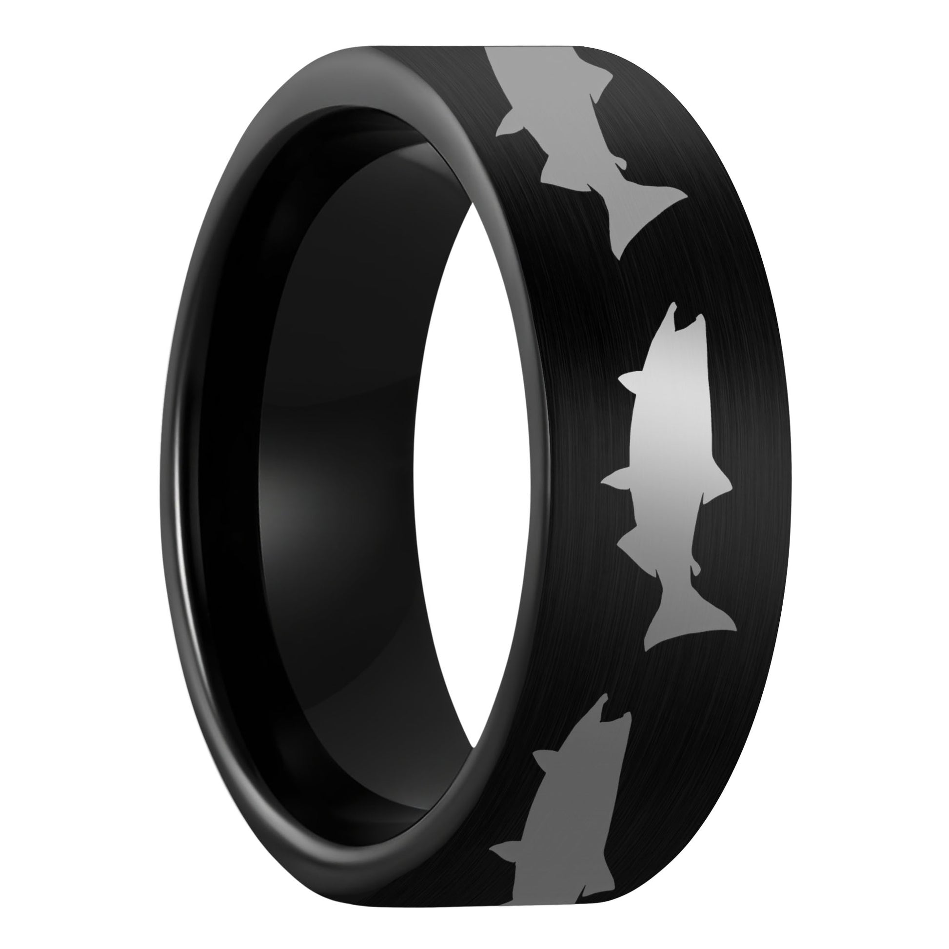 Alliance pour hommes en tungstène noir brossé poisson saumon