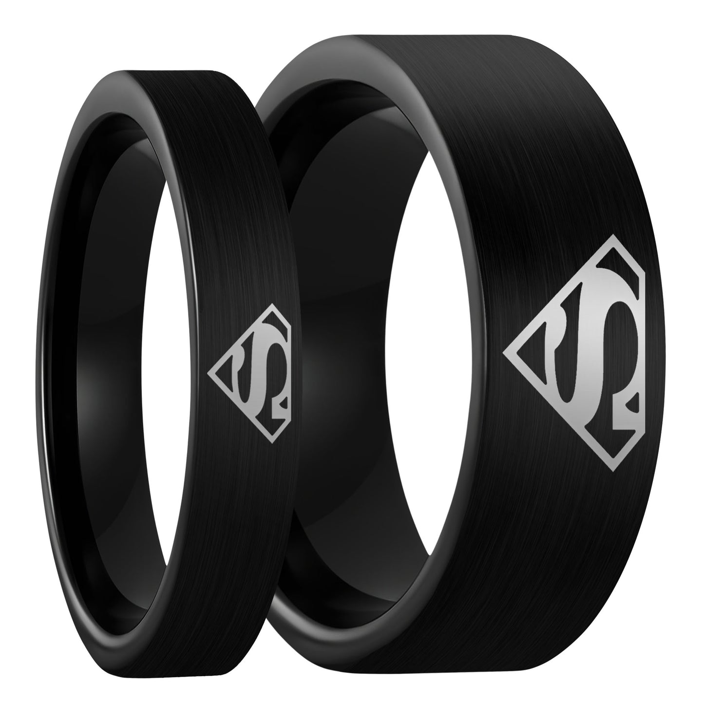 Ensemble d'alliances assorties pour couple en tungstène noir brossé Superman