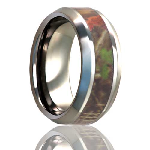 Alliance pour homme en titane incrusté de camouflage arbre avec bords biseautés