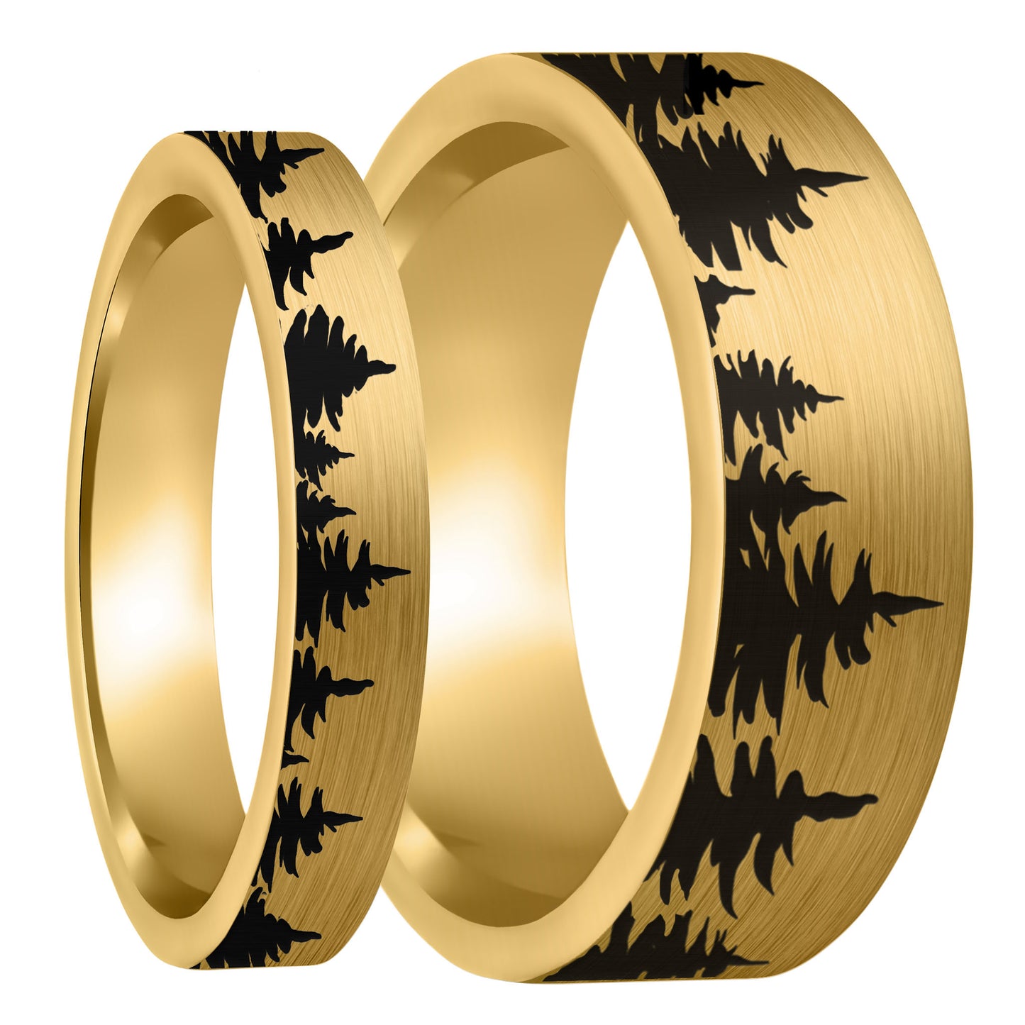 Ensemble d'alliances assorties pour couple en tungstène doré brossé Treeline