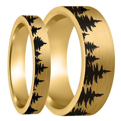 Mountain Range Forest Black Tungsten Couple's Matching Wedding Band Set