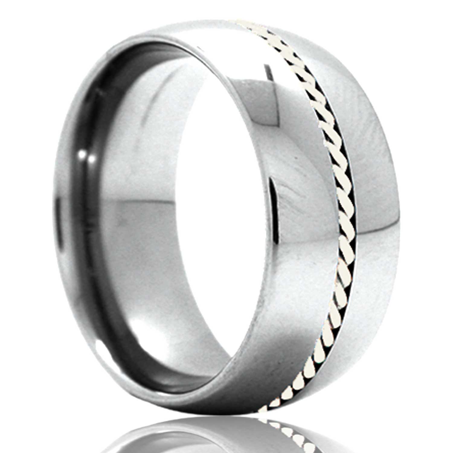 Alliance en tungstène bombé avec incrustation de platine tissée