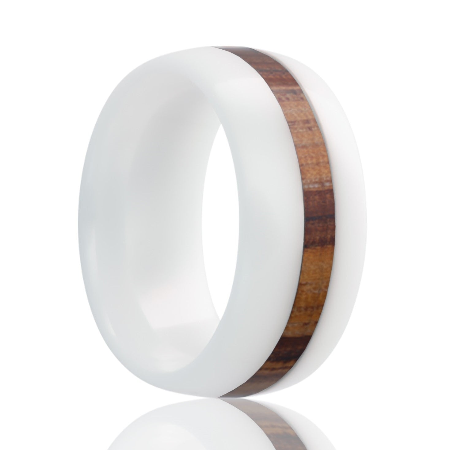 Alliance en céramique blanche bombée avec incrustation de bois de zèbre