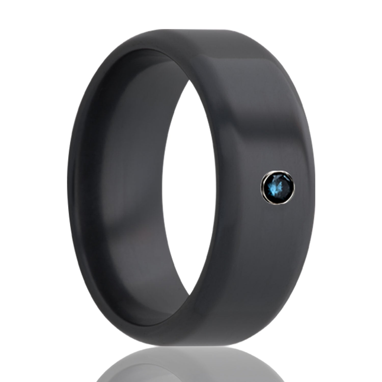 Alliance en zirconium avec bords biseautés et saphir bleu