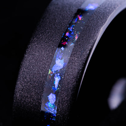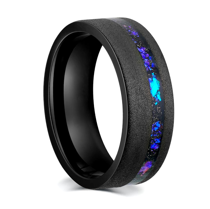 Alliance pour homme en tungstène noir avec incrustation d'opale écrasée
