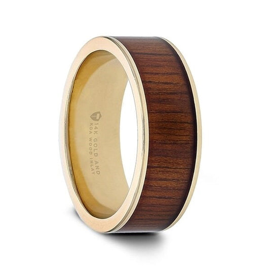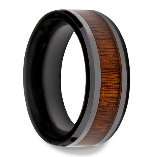 Alliance pour homme en or rose 14 carats et incrustation de bois de zèbre