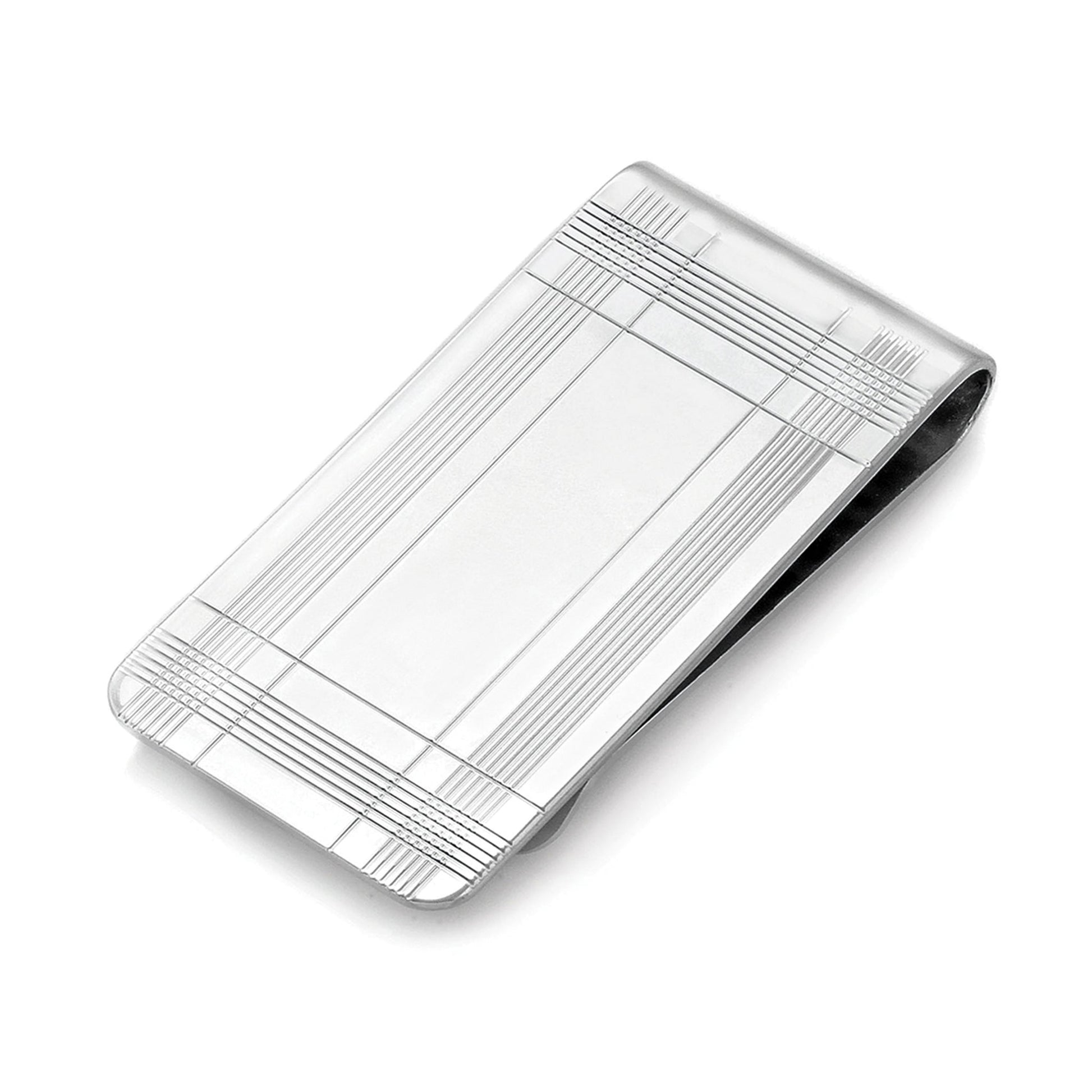 Slide into style with our sterling silver plaid pattern money clip! This sleek and chic money clip is the perfect way to keep your cash organized and secure without going over budget. Made from high-quality sterling silver, this money clip is durable and designed to last. Our money clip features a unique plaid pattern that adds a touch of style and sophistication to any outfit. Whether you're dressing up for a fancy night out or just running errands around town, this money clip is the perfect way to keep your cash in check. Plus, our money clip is super easy to use! Simply slide your bills between the two sides of the clip and you're good to go. No more fumbling with bulky wallets or trying to cram your cash into a tiny pocket - this money clip has got you covered. So why settle for a boring old wallet when you can upgrade to our sterling silver plaid pattern money clip? With its sleek design, high-quality construction, and affordable price, this money clip is the perfect way to keep your cash organized and looking sharp. Order yours today and see the difference for yourself.