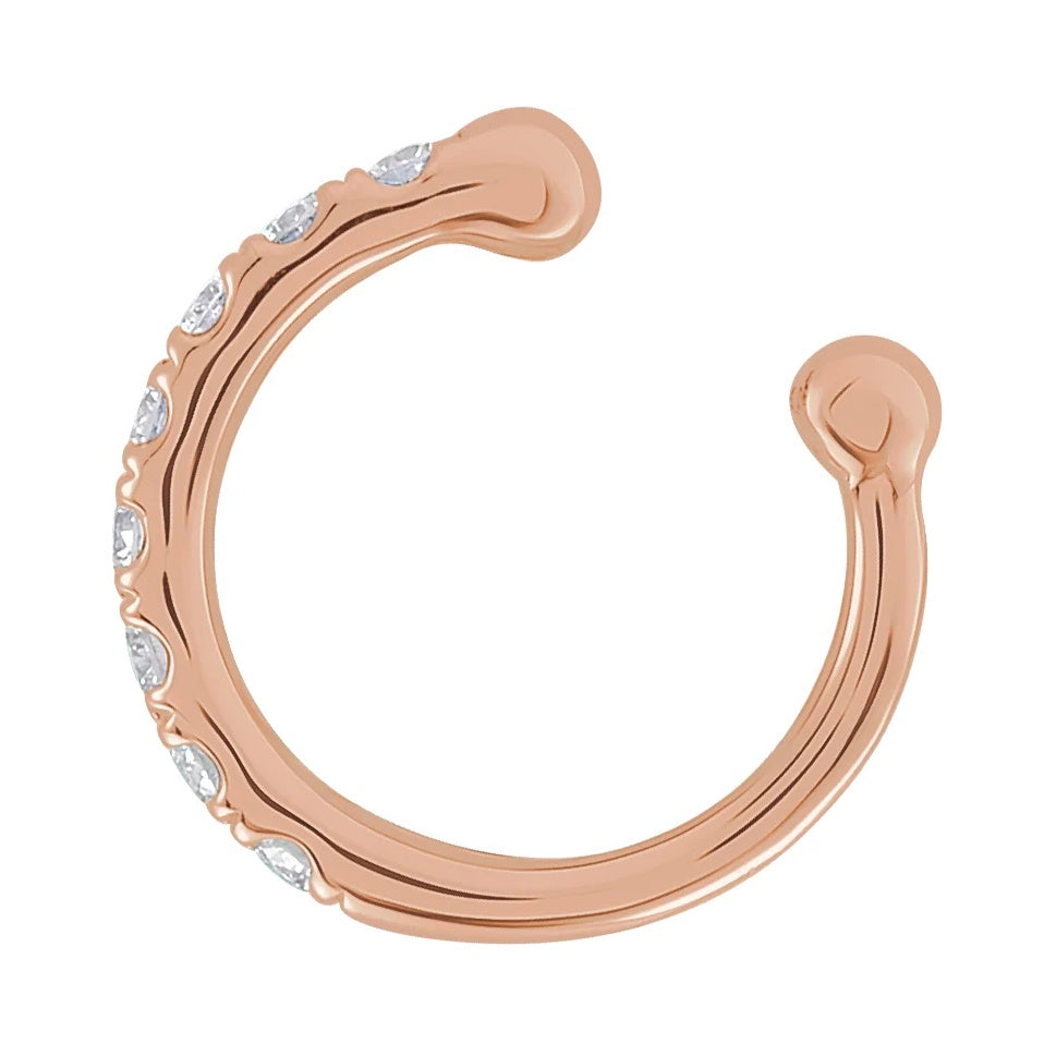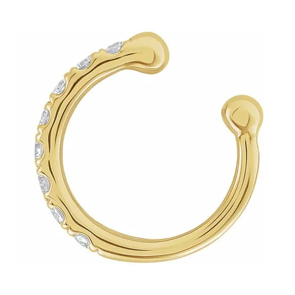 Elevate your style with the exquisite 14k gold diamond ear cuff! Crafted for those who desire to make a bold fashion statement, this single cuff is ideal for any event. Its intricate design makes it effortless to wear, and the premium materials guarantee its longevity. This ear cuff is perfect for those who want to look their best without breaking the bank. The dazzling diamonds reflect light beautifully, ensuring that all eyes are on you. It's also an excellent present for anyone who appreciates distinctive and fashionable jewelry. Enhance your accessory collection and indulge in this 14k gold diamond ear cuff. You won't be disappointed.