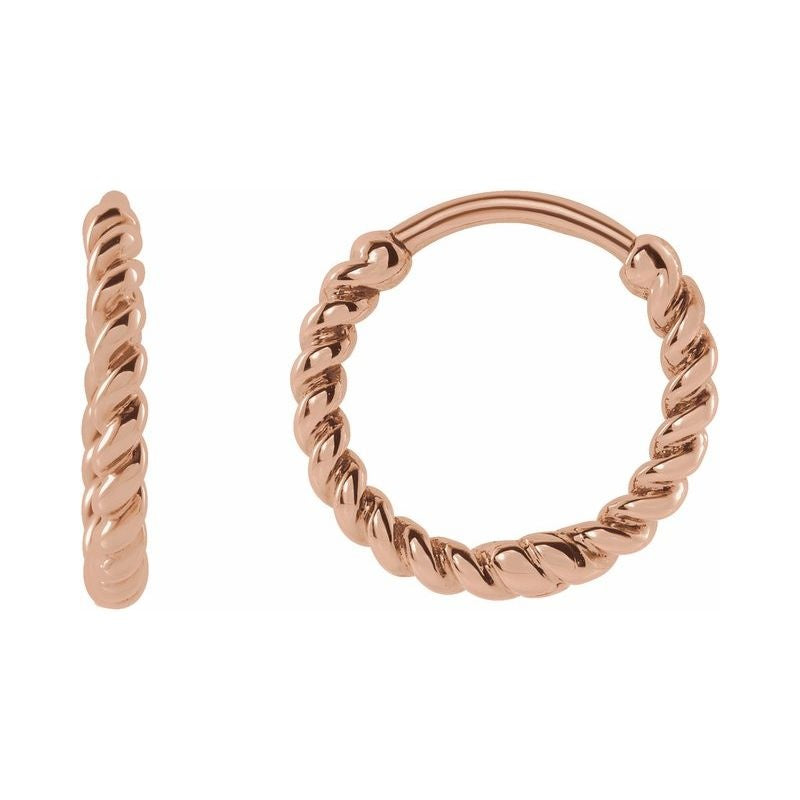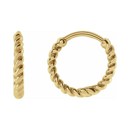 14k Gold Twisted Rope Huggie Hoop Earrings