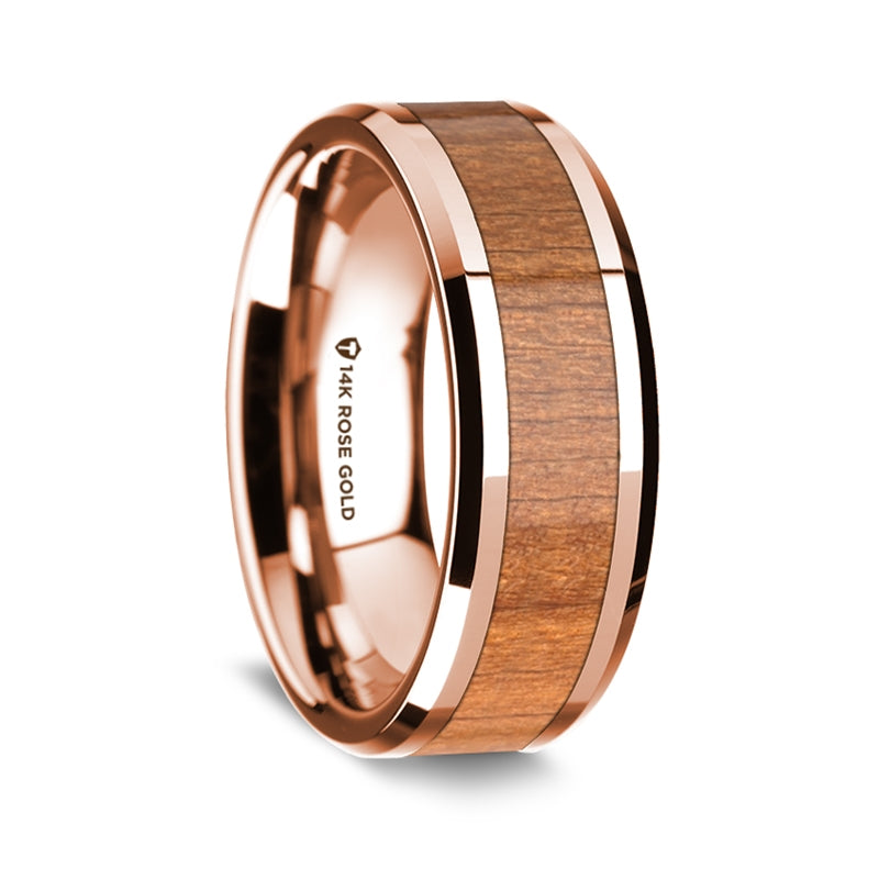 14k Rose Gold Men's Wedding Band with Cherry Wood Inlay