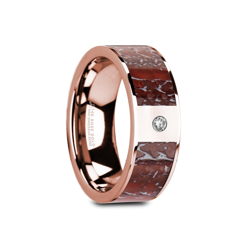14k Rose Gold Men's Wedding Band with Red Dinosaur Bone Inlay & Diamond