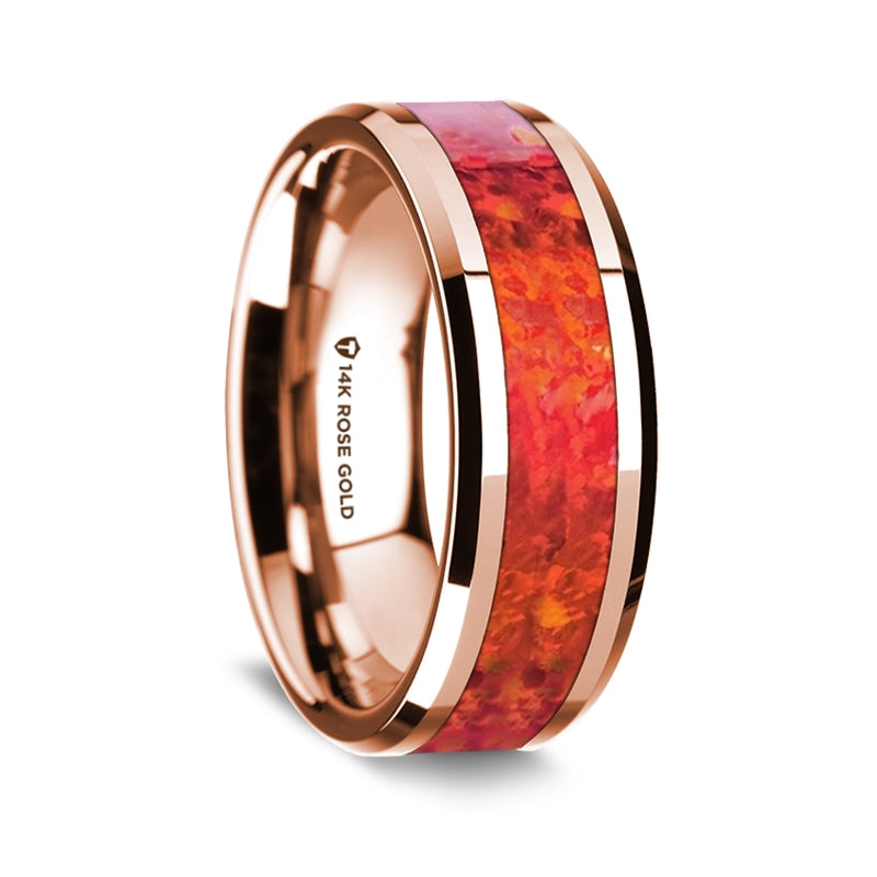 14k Rose Gold Men's Wedding Band with Red Opal Inlay