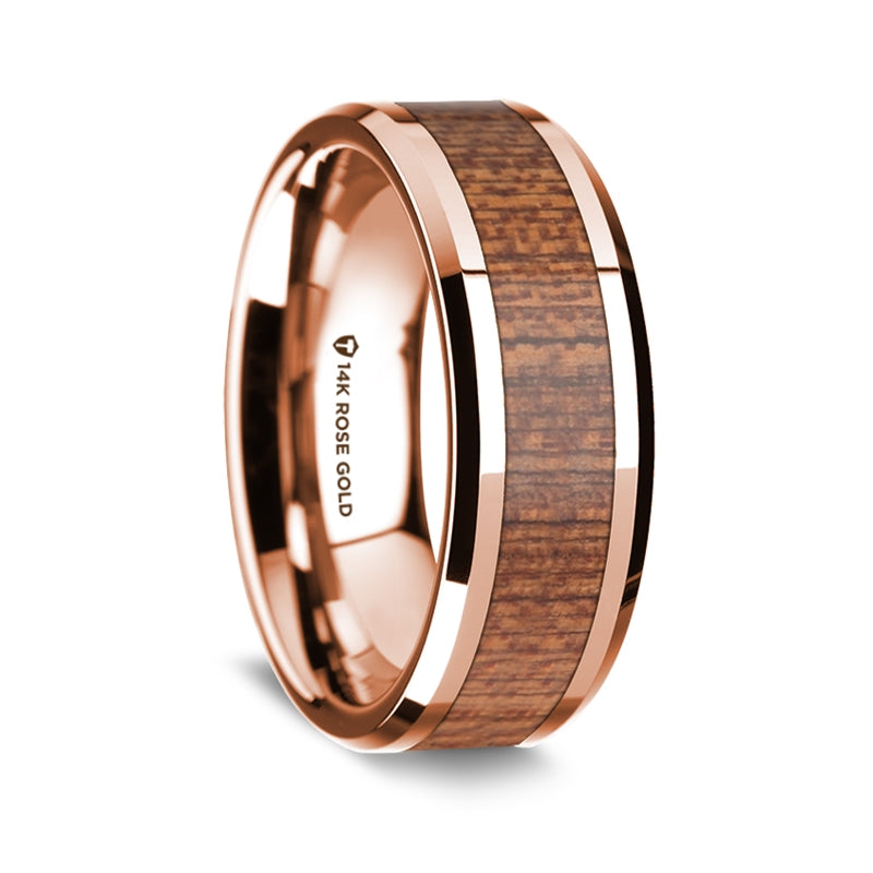 14k Rose Gold Men's Wedding Band with Sapele Wood Inlay