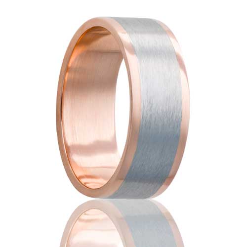 14k Rose Gold Satin Finish Men's Wedding Band with Cobalt Inlay