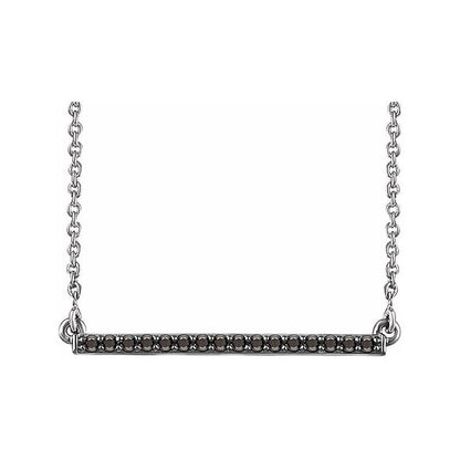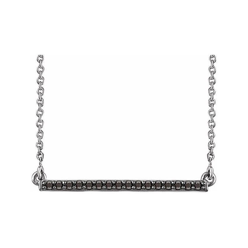 Get ready to wow your friends with this stunning 14k white gold and black diamond bar necklace! Our high-quality necklace is perfect for those who want to look and feel fabulous without going over budget. The unique design of this necklace will make you stand out from the crowd, making it the perfect gift for that special someone in your life. The black diamond centerpiece is sure to turn heads and give you the confidence to take on the world. The 18-inch chain is perfect for wearing with any outfit, making it a versatile addition to your jewelry collection. The necklace is also made with durable materials so you can wear it every day without worrying about damage. Treat yourself or someone you love to this gorgeous necklace today and see the difference it can make in your life. Don't wait, order yours now and start living your best life.