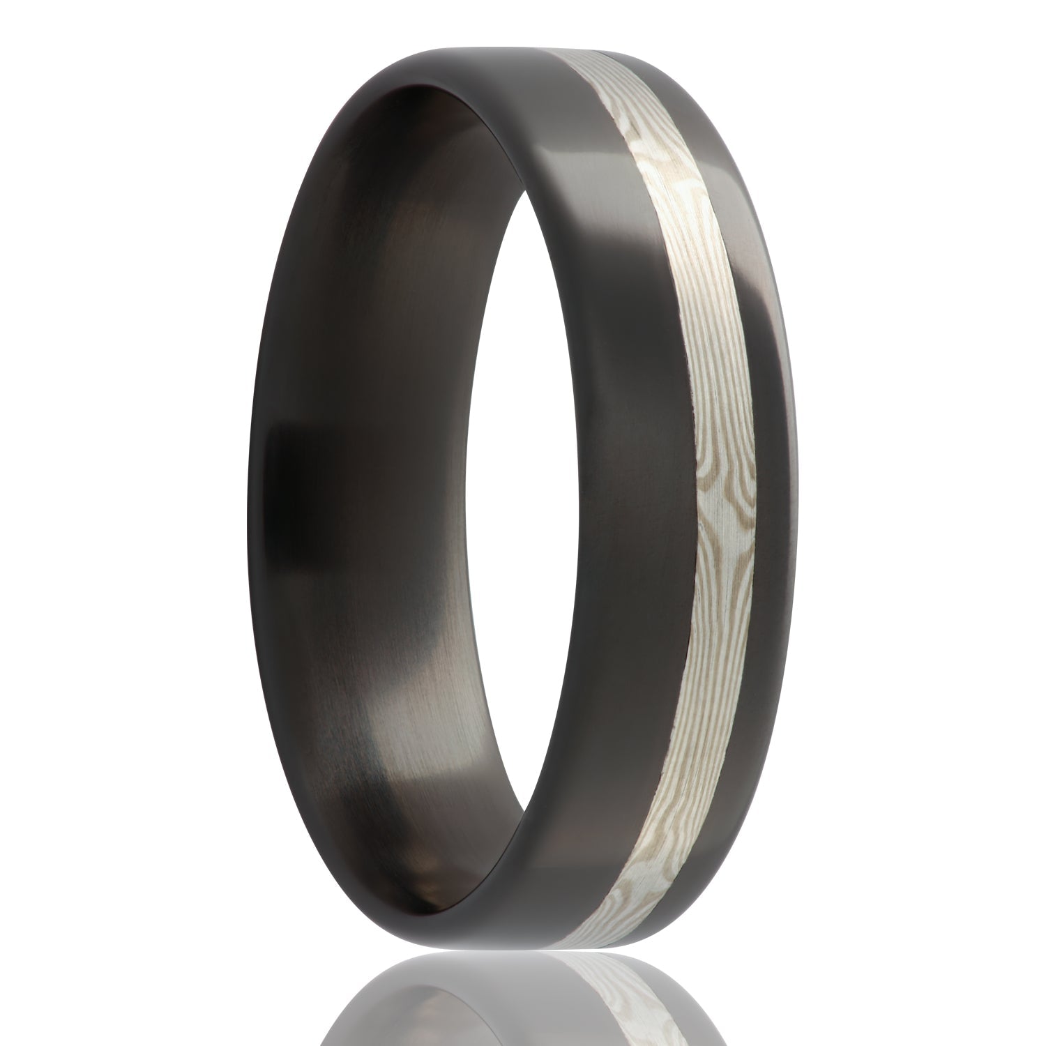 - Material: Zirconium with 14k White Gold & Sterling Silver Mokume Gane