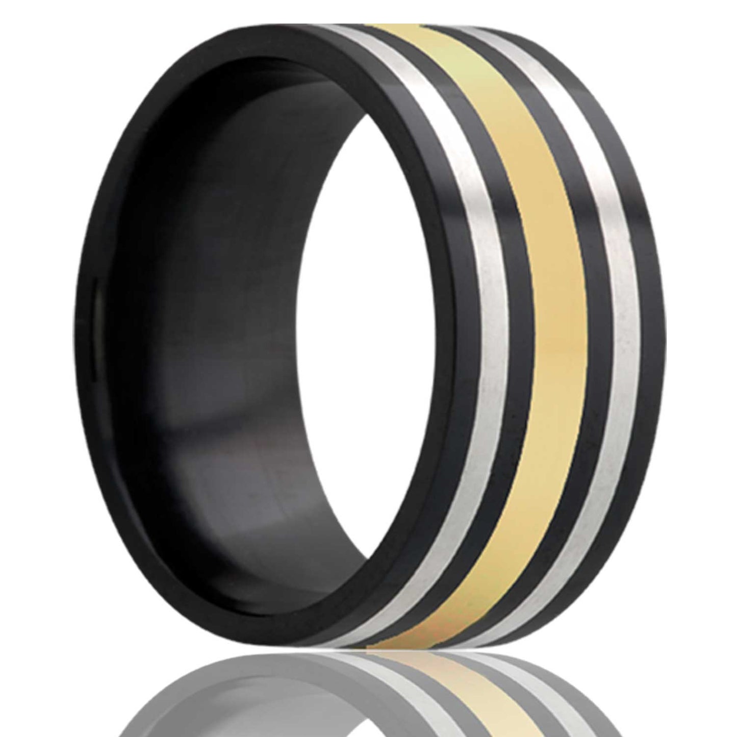 14k Yellow Gold & Argentium Silver Inlay Zirconium Wedding Band
