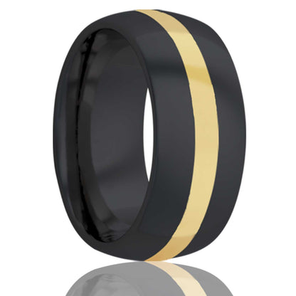 14k Yellow Gold Inlay Domed Zirconium Wedding Band