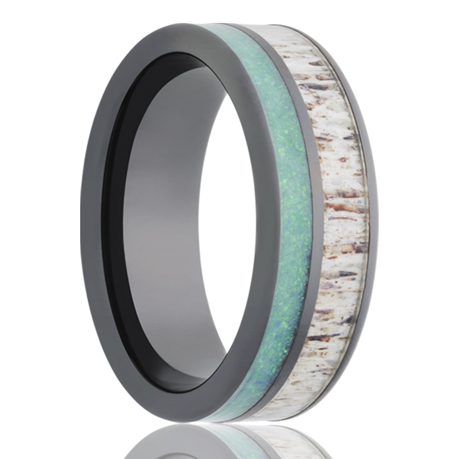 This Antler & Opal Inlay Ceramic Wedding Band is perfect for those who want a unique and high-quality ring while remaining affordable. The ceramic material is durable and lightweight, making it easy to wear every day. The inlaid antler and opal provide a touch of nature's beauty to your finger. Not just for weddings, this ring is perfect for anyone who loves the great outdoors and wants to show off their unique style. It also makes a great gift for someone special who appreciates quality craftsmanship and natural elements. Made with precision and attention to detail, this ring is a true work of art. It's sure to turn heads and spark conversations wherever you go. Don't settle for a boring, run-of-the-mill ring when you can have something as special as this Antler & Opal Inlay Ceramic Wedding Band. Get yours today and experience the difference.