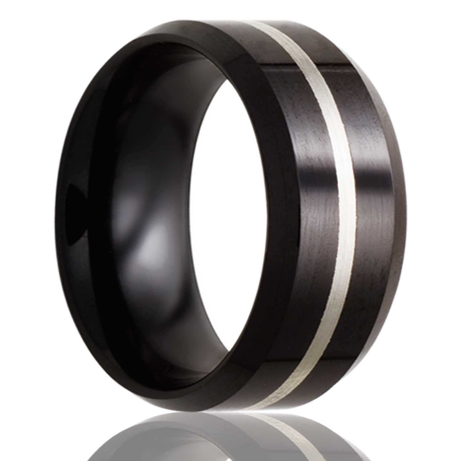 Argentium Silver Inlay Ceramic Wedding Band with Beveled Edges