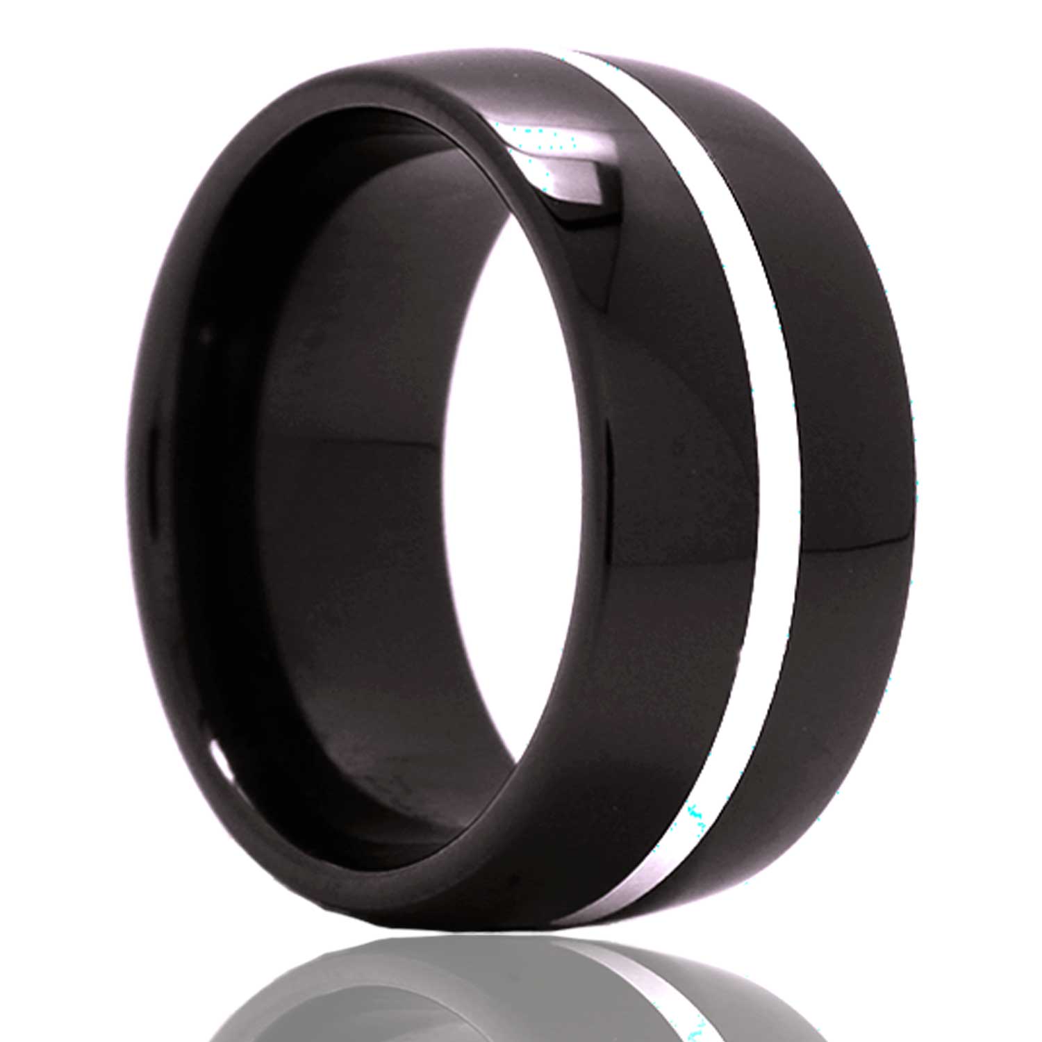 Argentium Silver Inlay Domed Black Ceramic Men's Wedding Band