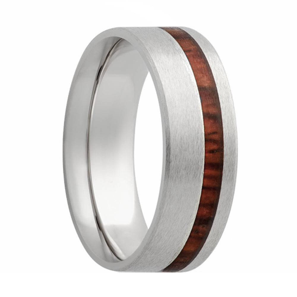 Asymmetrical Cocobolo Wood Inlay Satin Finish Cobalt Wedding Band