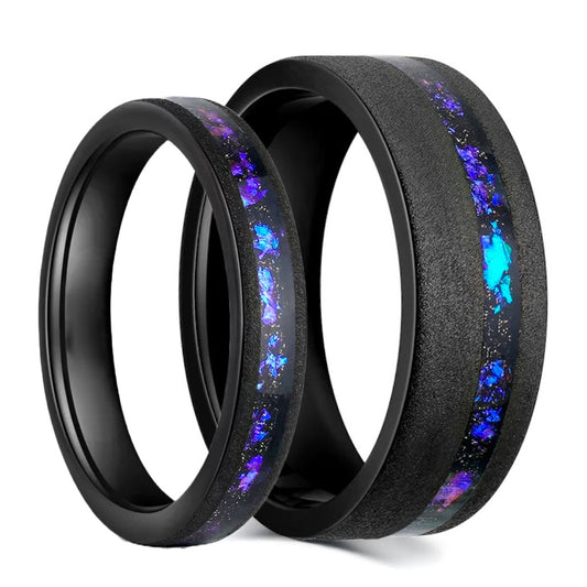 Galaxy Fire Opal Inlay Gold Tungsten Couple's Matching Wedding Band Set