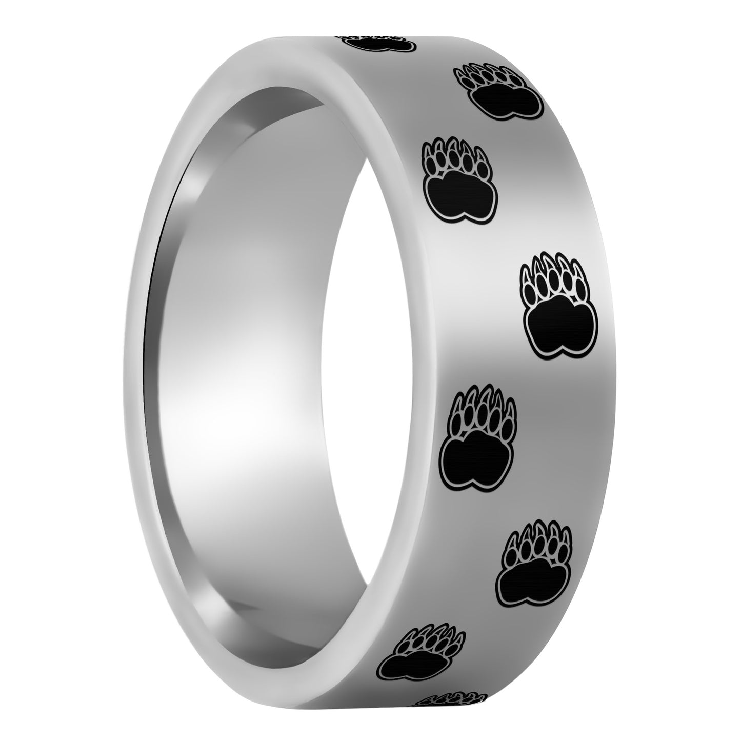 This is the fiercest ring money can buy! With its daunting bear paw print laser engraving, this take on a traditional silver ring is the perfect combination of classic and rugged. This ring is great as a wedding band, birthday present, or a just-because gift and is sure to be appreciated for years to come due to its Tungsten carbide construction. One of the toughest metals on earth, Tungsten carbide will look as great in ten years as it does the day you receive it, with just an occasional polish for any grime or scuffs. The bear paw print ring is a great choice for any bear lovers or hunters in your life. This ring is perfect for those who want a unique and high quality wedding band that represents their love for nature. The bear paw design is engraved with precision and adds a rugged touch to this stunning ring. The tungsten material is durable and scratch resistant, so you can wear it every day without worrying about damage. It's also hypoallergenic, making it safe for those with sensitive skin. Plus, with our lifetime warranty, you can exchange the ring for a different size or get it fixed if it gets damaged. This ring is not just for weddings, it's perfect for all occasions and can be worn by anyone who loves the outdoors. The simple yet bold design will compliment any outfit, from casual to formal. It also makes a great gift for your loved ones who appreciate the beauty of nature.