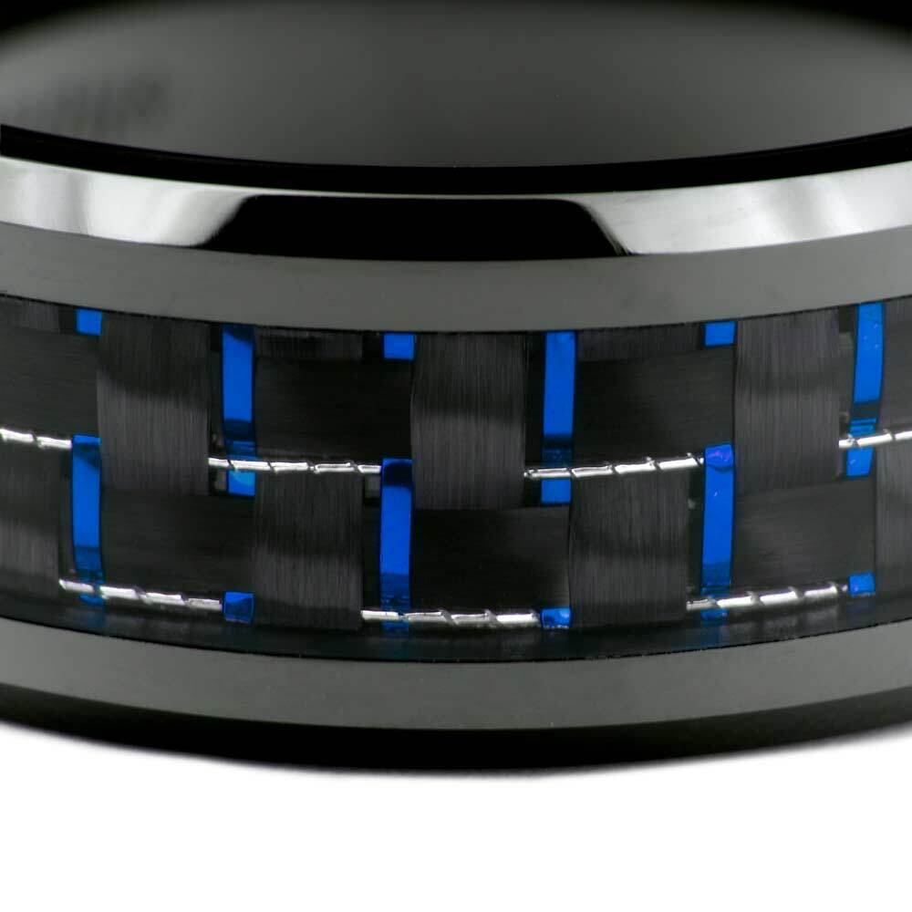 Introducing our black & blue carbon fiber inlaid ceramic couple's matching wedding band set - the perfect choice for couples who want to make a statement while remaining affordable! Our rings are made with high-quality materials that ensure they will last a lifetime, and they come with a lifetime warranty that covers damage and size exchanges. These matching bands are the perfect choice for couples who want to show their commitment to each other in a unique and stylish way. The black and blue carbon fiber inlay adds a touch of modern flair to the classic ceramic band, making them a true conversation starter. Our rings are also incredibly comfortable to wear. The ceramic material is lightweight and won't weigh down your finger, making them perfect for everyday use. And with their scratch-resistant design, you won't have to worry about them getting damaged easily. Give the gift of love with our black & blue carbon fiber inlaid ceramic couple's matching wedding band set. They make a great gift for your significant other, or for a couple that's close to your heart. Order yours today and show the world that your love is as strong as the materials that make up these stunning rings.