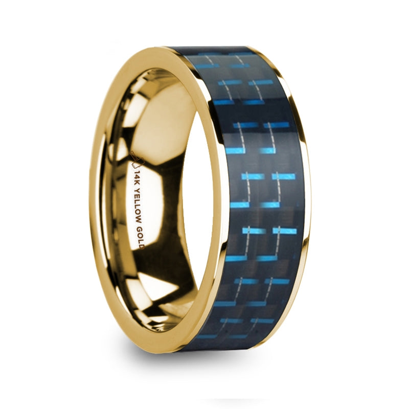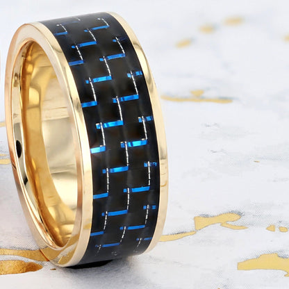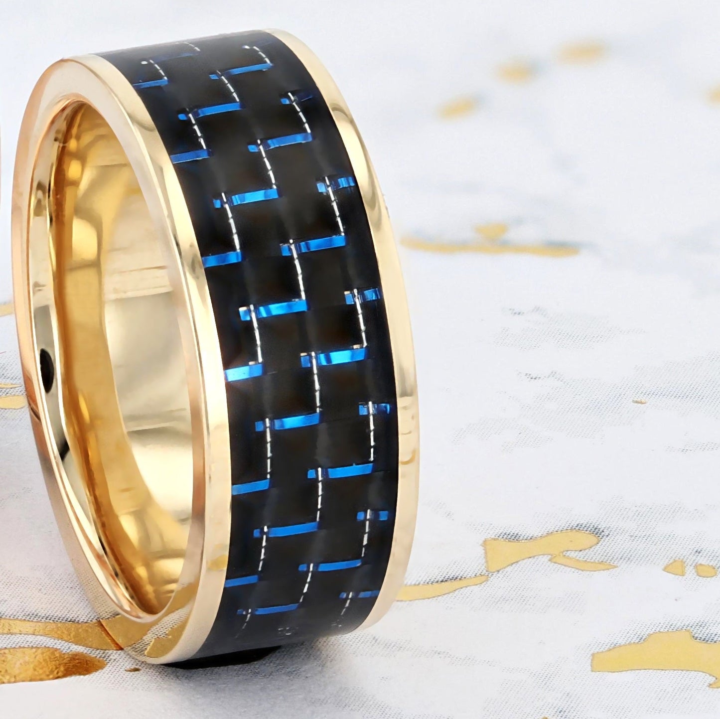 Black & Blue Carbon Fiber Inlay 14k Yellow Gold Men's Wedding Band