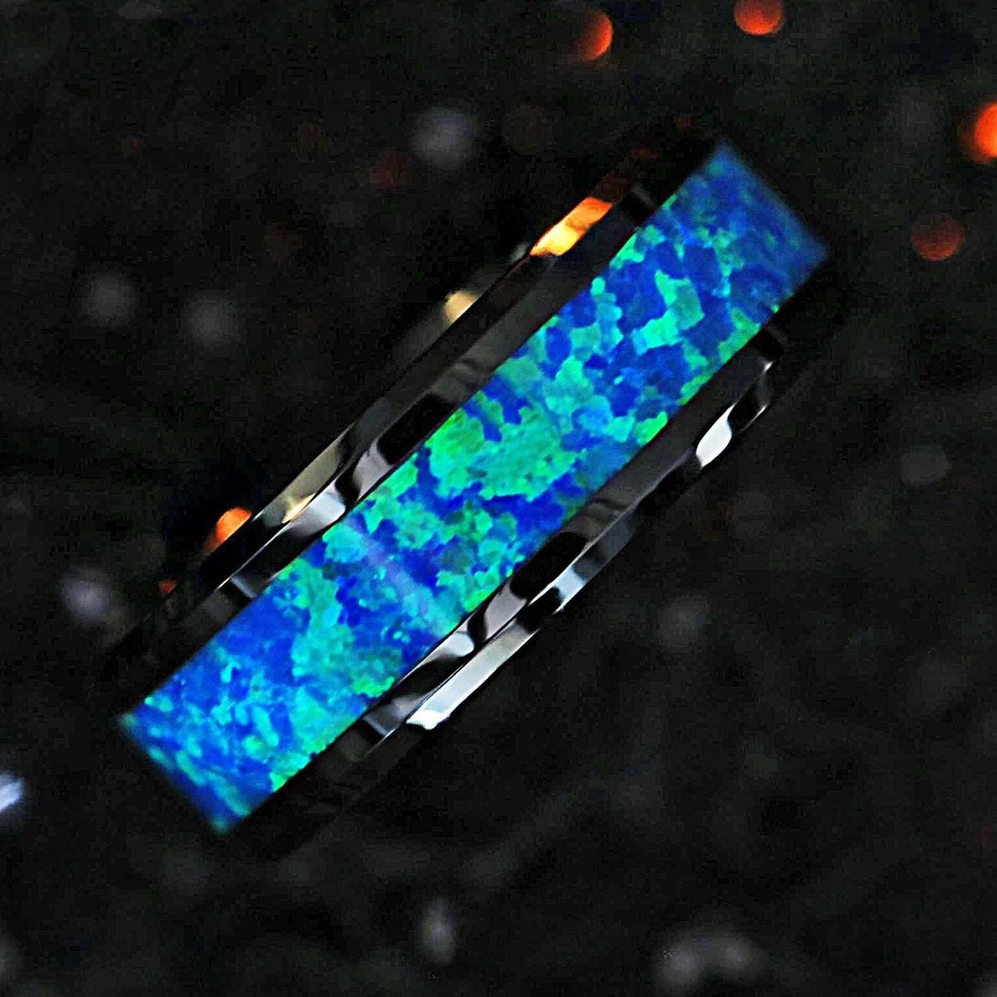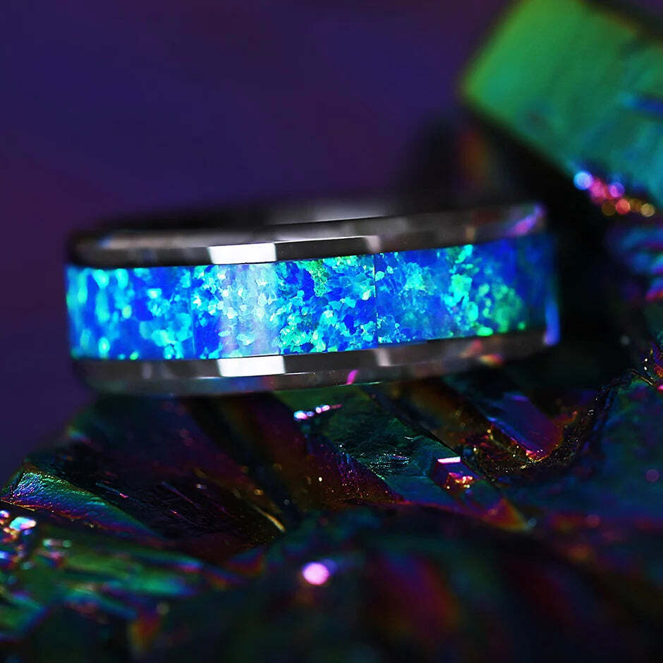 Wedding bands are a symbol of love and are worn on the left hand on the ring finger to surround the vein that connects directly to the heart. You will wear this piece every day for the rest of your life and as such, you should get this band that truly reflects your character. The blue green opal inlay is set against a black backdrop, the ideal variance to the midnight profundity of the superior ceramic composition. A man who loves the majestic waters will fall in love with this wedding ring. From its bold style to its delicate and fine hues, nature can no doubt be a source of influence.