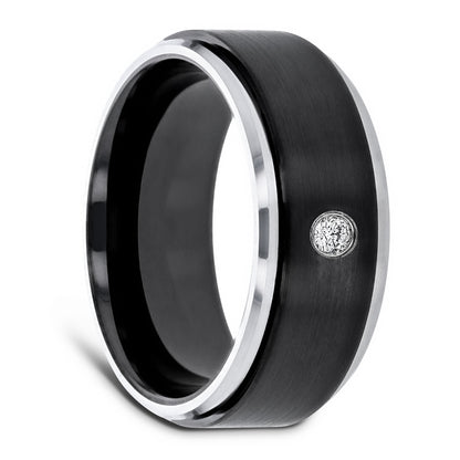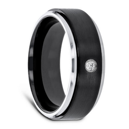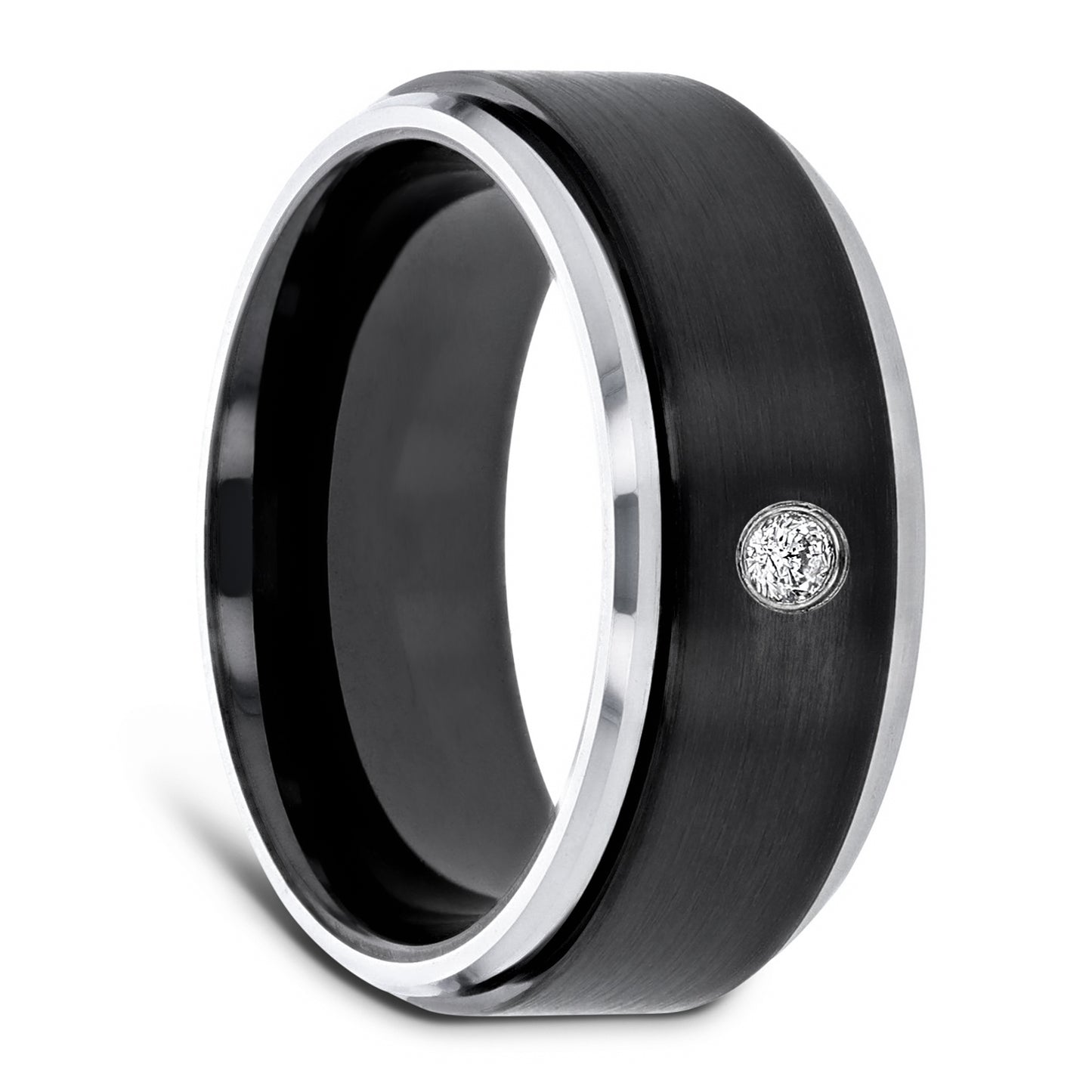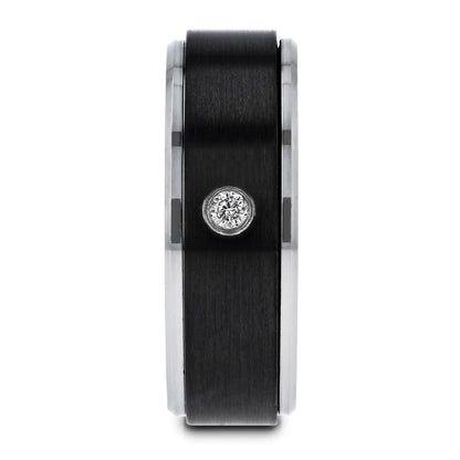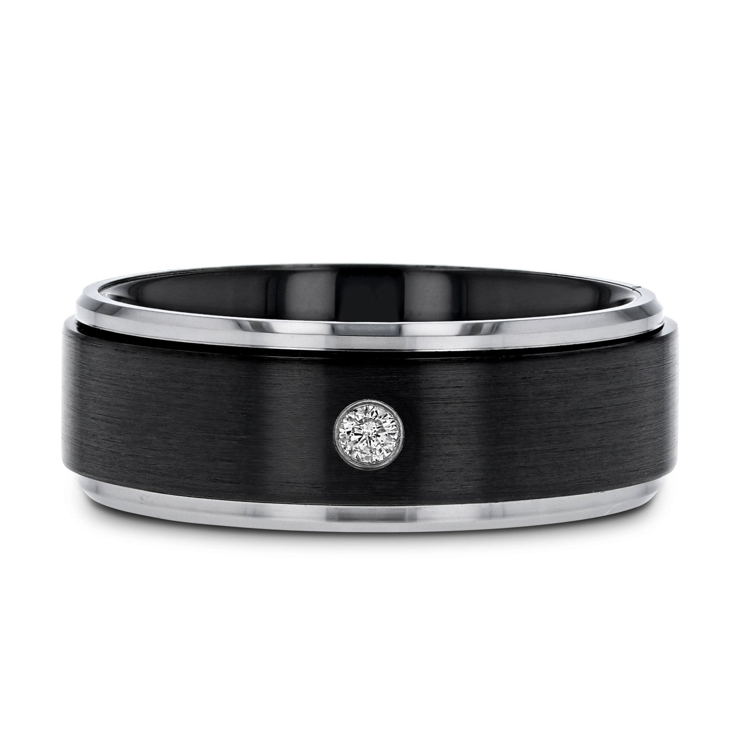 Black Ceramic Men's Wedding Band with Black Carbon Fiber Inlay & Diamond
