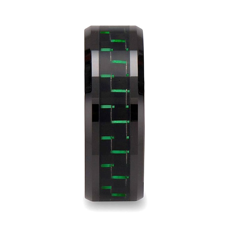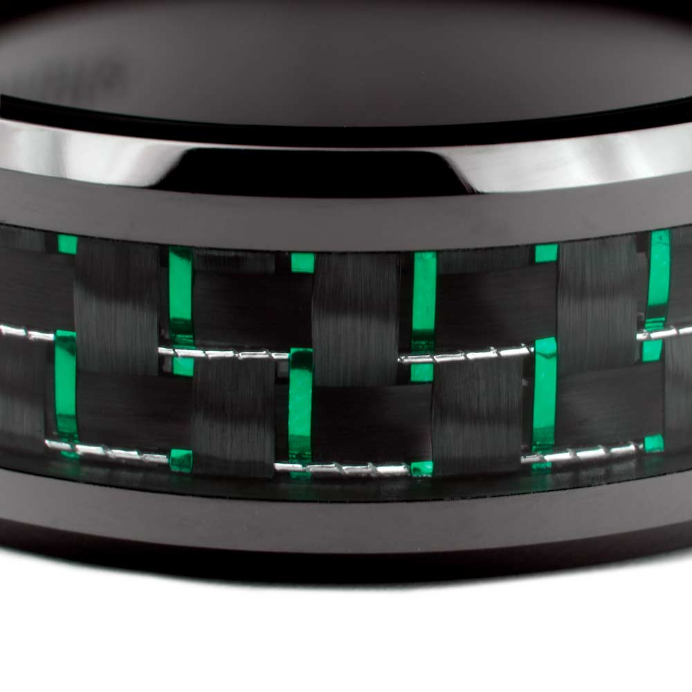 Black Ceramic Men's Wedding Band with Black & Green Carbon Fiber Inlay