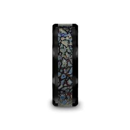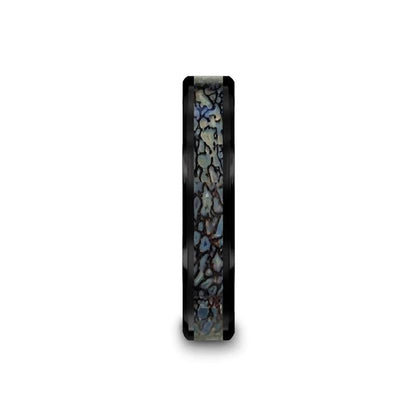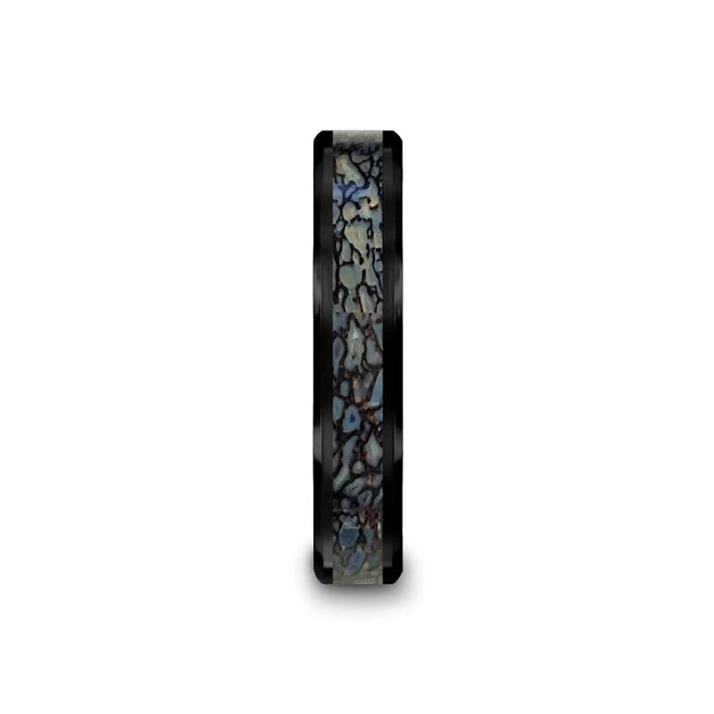 Black Ceramic Men's Wedding Band with Blue Dinosaur Bone Inlay