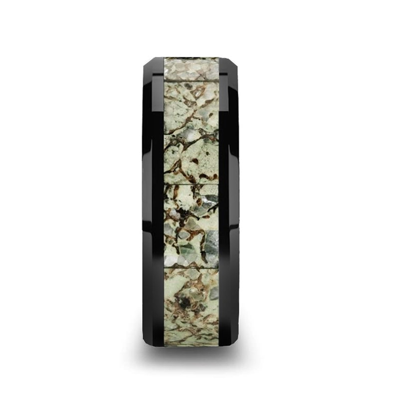 Black Ceramic Men's Wedding Band with Green Dinosaur Bone Inlay