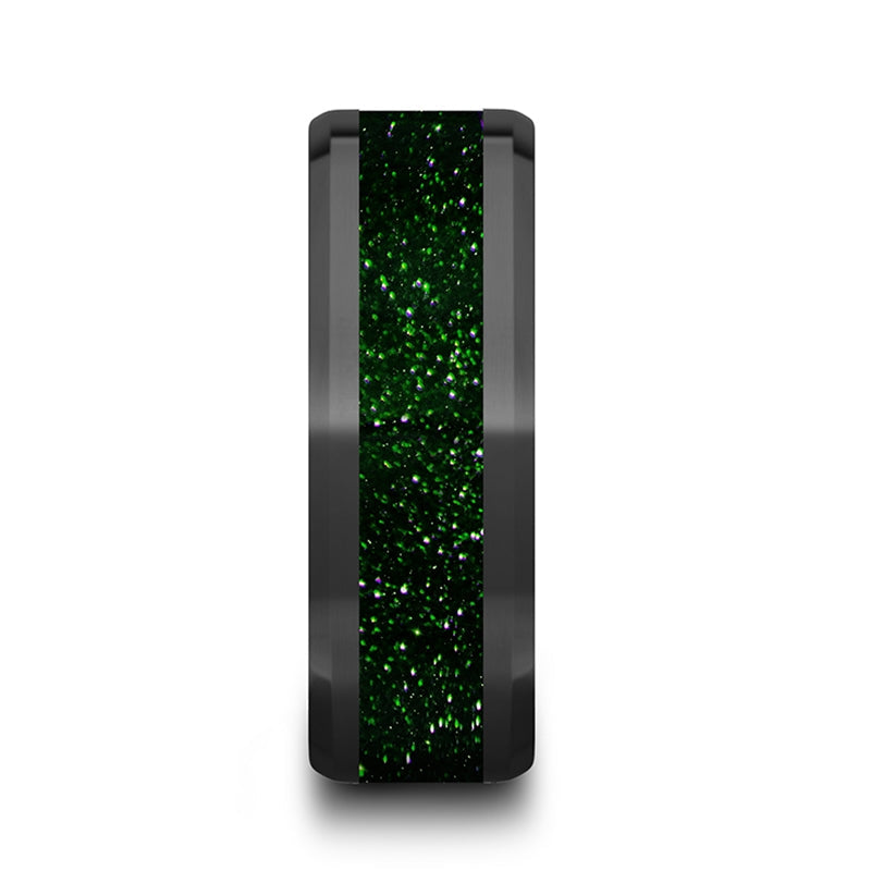 Black Ceramic Men's Wedding Band with Green Goldstone Inlay