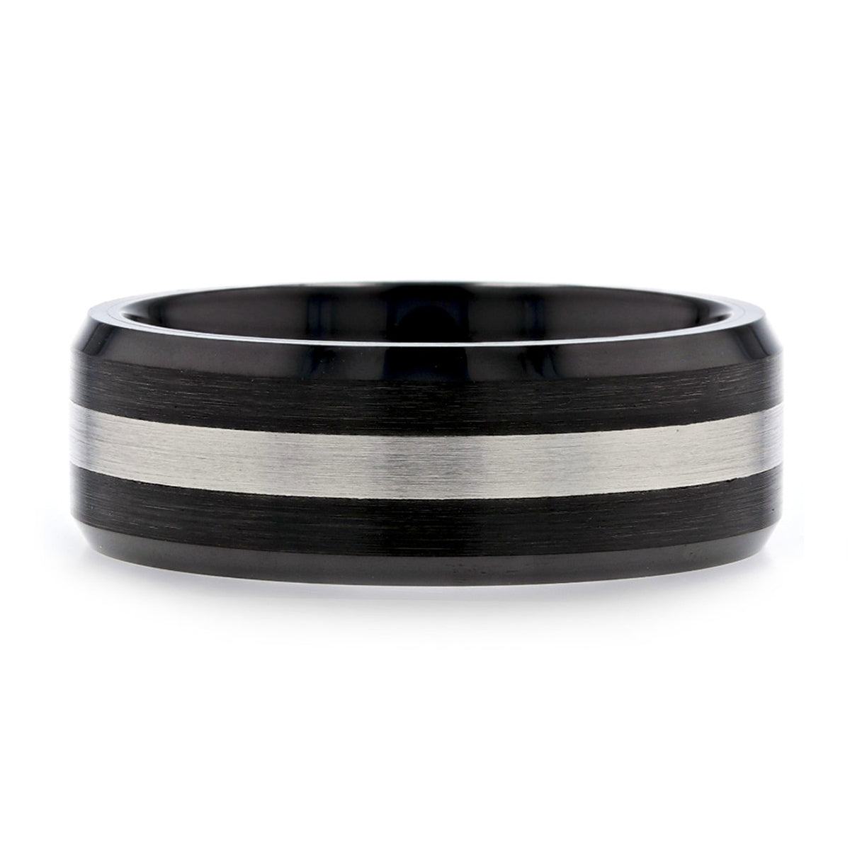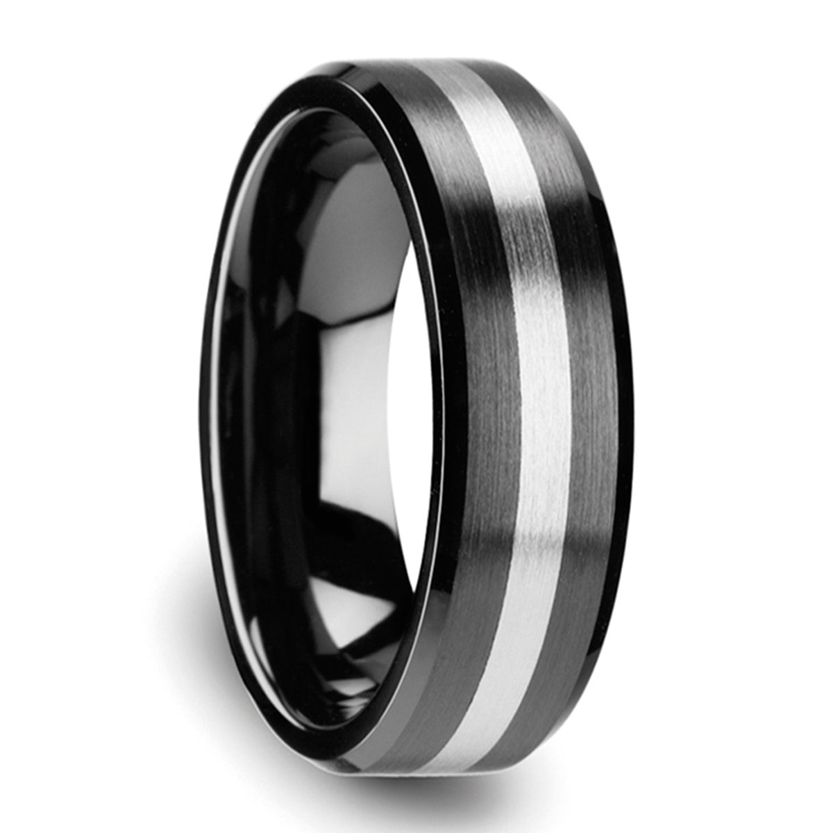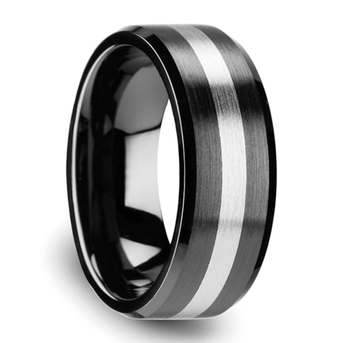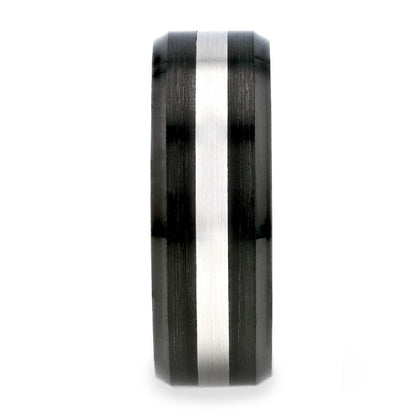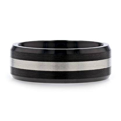 Black Ceramic Men's Wedding Band with Tungsten Inlay
