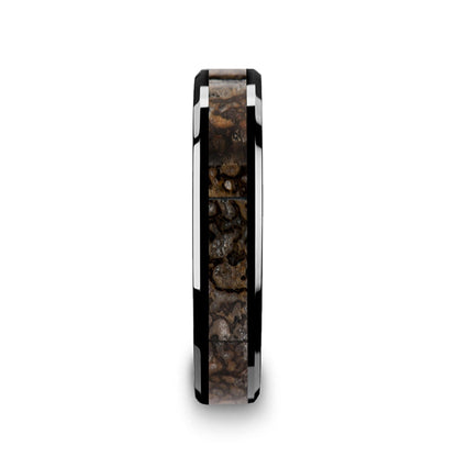 Black Ceramic Wedding Band with Brown Dinosaur Bone Inlay