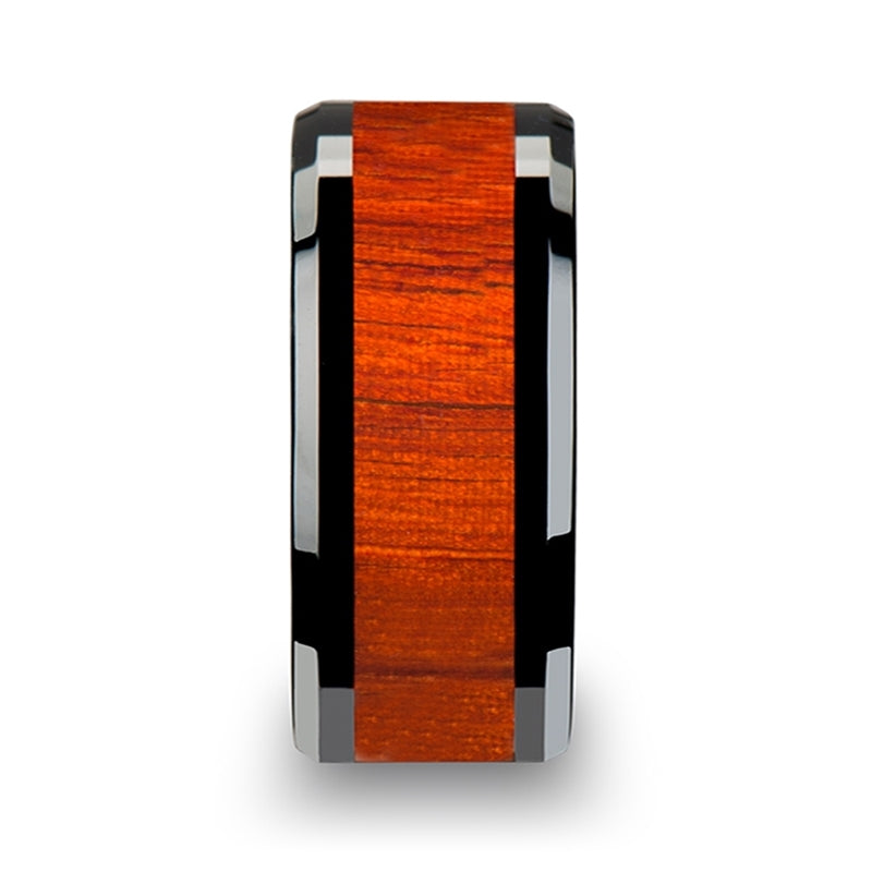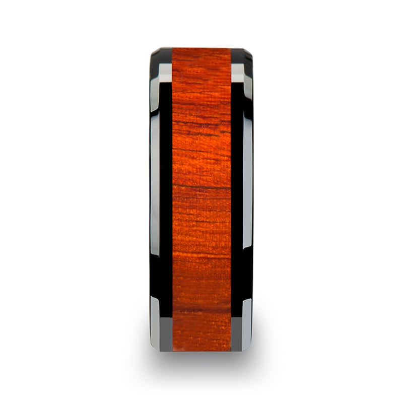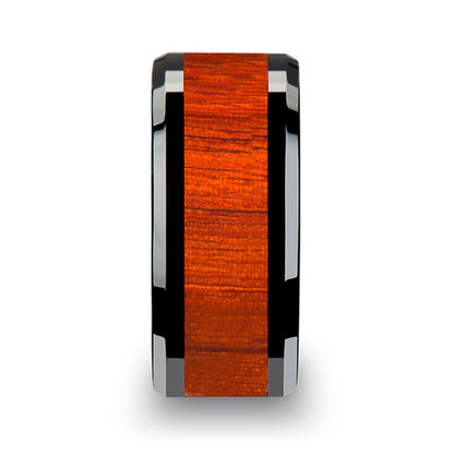 Black Ceramic Wedding Band with Padauk Wood Inlay