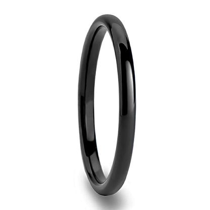 Black Ceramic Women's Domed Extra-Thin Stackable Wedding Band