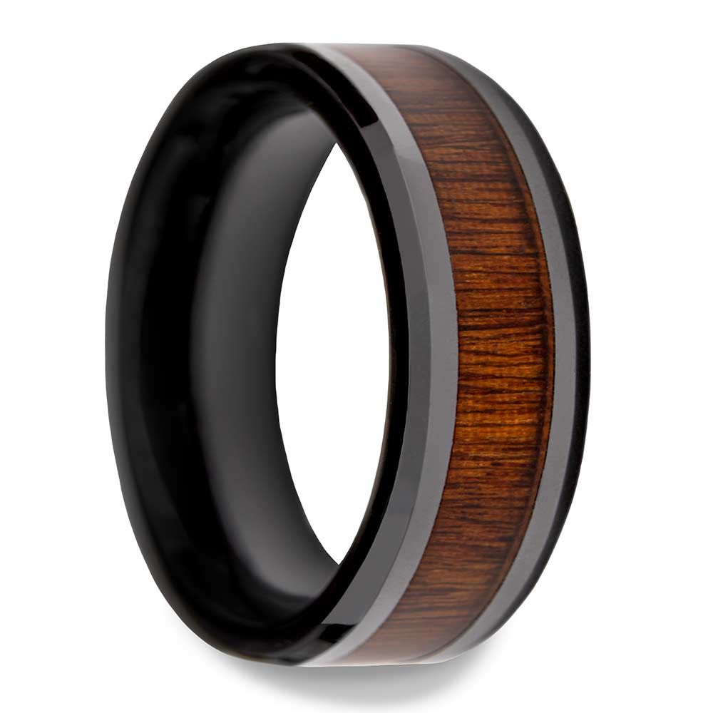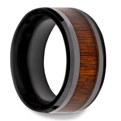 Black Ceramic Women's Wedding Band with Rosewood Inlay
