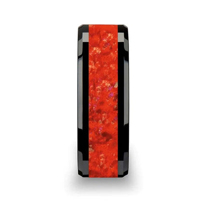 Black Ceramic Women's Wedding Band with Red Opal Inlay