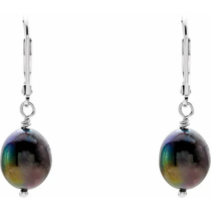 Black Freshwater Cultured Pearl Sterling Silver Earrings